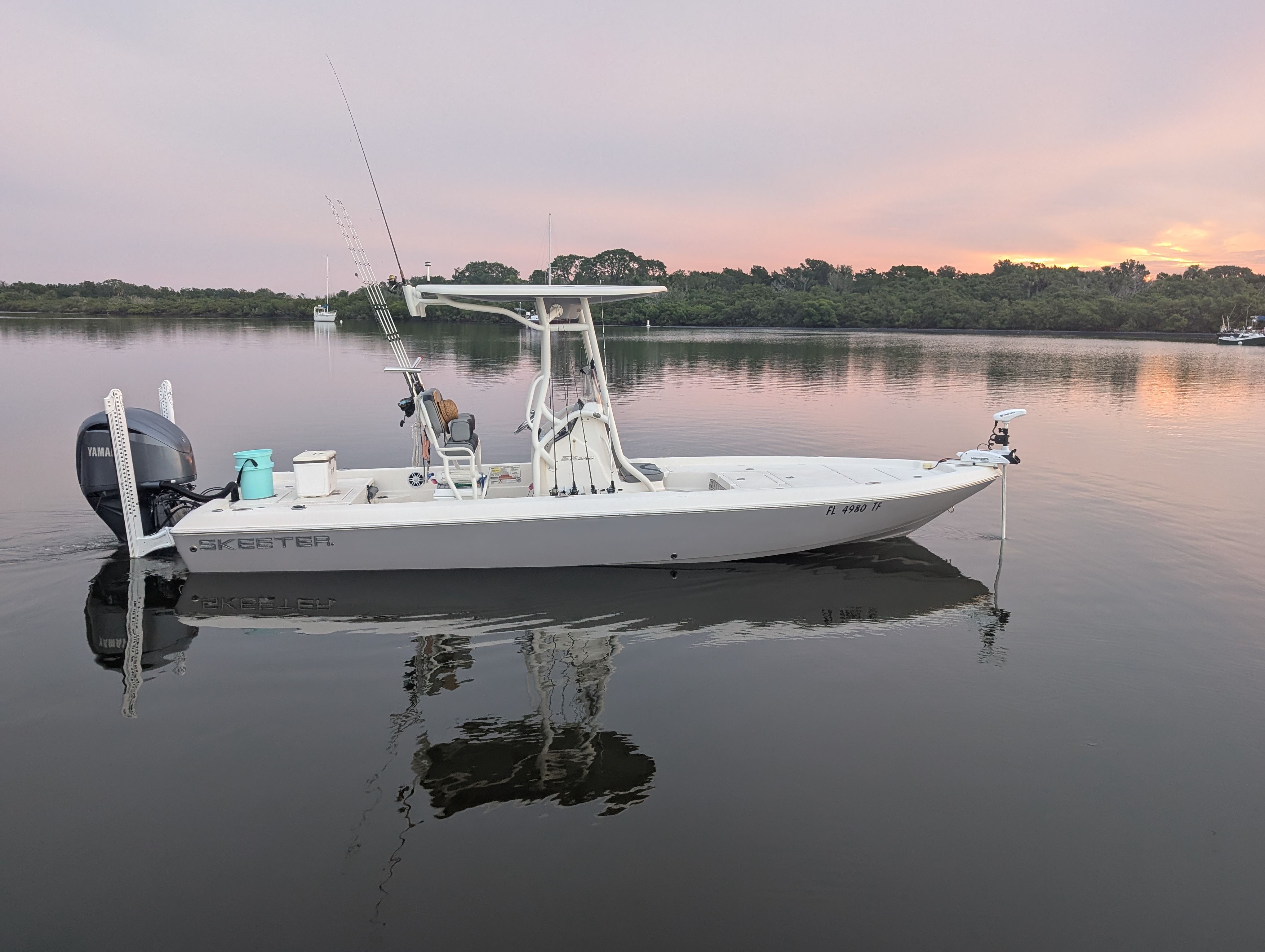 Guests fish from two well-equipped vessels designed to suit different waters and styles. The 24’ Skeeter SX240 bay boat, powered by a 300 HP Yamaha engine, accommodates up to six anglers and cruises comfortably at 35 mph. For shallow flats and hard-to-reach creeks, the 16’ Back Country flats skiff with a Mercury 90 engine allows access that larger boats cannot reach. Both boats are stocked with safety equipment, electronics, and ample space for rods, tackle, and gear, providing a reliable and enjoyable platform for every trip.